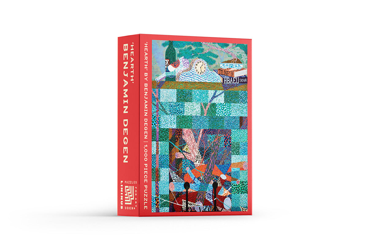 Get cozy with this 1,000-piece art jigsaw puzzle featuring a distinctive work by celebrated contemporary artist Benjamin Degen. This unique interior scene, centered on a fireplace, cleverly explores art history. Degen fuses the vertical stacking of a traditional Dutch still-life with the perspective of a Chinese landscape painting, creating a sophisticated and compelling image. This high-quality art puzzle is a truly unique gift for adults and a fantastic collector's item for art enthusiasts.
